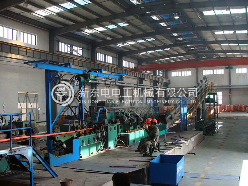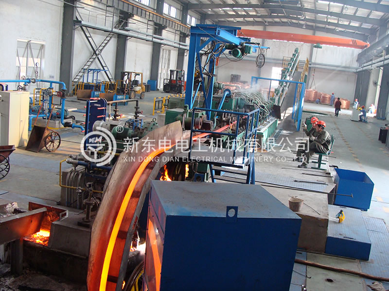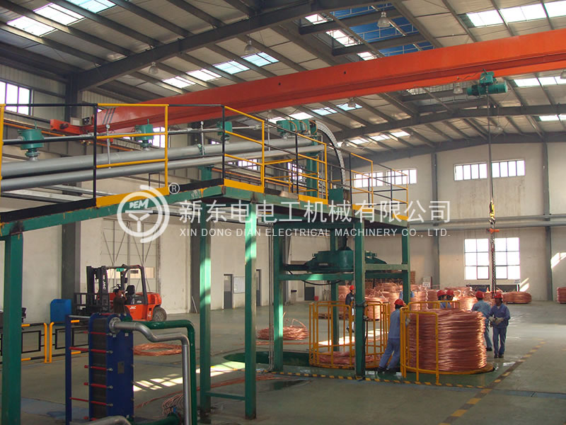 本生產(chǎn)線積徐州新東電電工多年研發(fā)銅連鑄連軋技術(shù)之經(jīng)驗(yàn),綜合美國(guó)南方線材、德國(guó)SMS、意大利 PROPERZI 同類設(shè)備的優(yōu)勢(shì)特點(diǎn),為國(guó)內(nèi)獨(dú)創(chuàng),可用100﹪廢舊紫銅作原料,采用先進(jìn)的火法精煉技術(shù),直接在連鑄連軋生產(chǎn)線上生產(chǎn)符合國(guó)標(biāo)的光亮低氧銅桿。